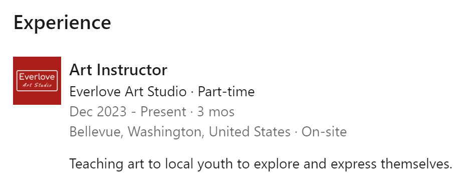 Hey everyone, I am currently an art instructor, specializing in working with kids from the ages of 4-12. Located in Bellevue, WA, the name of the school is Everlove Art Studio: